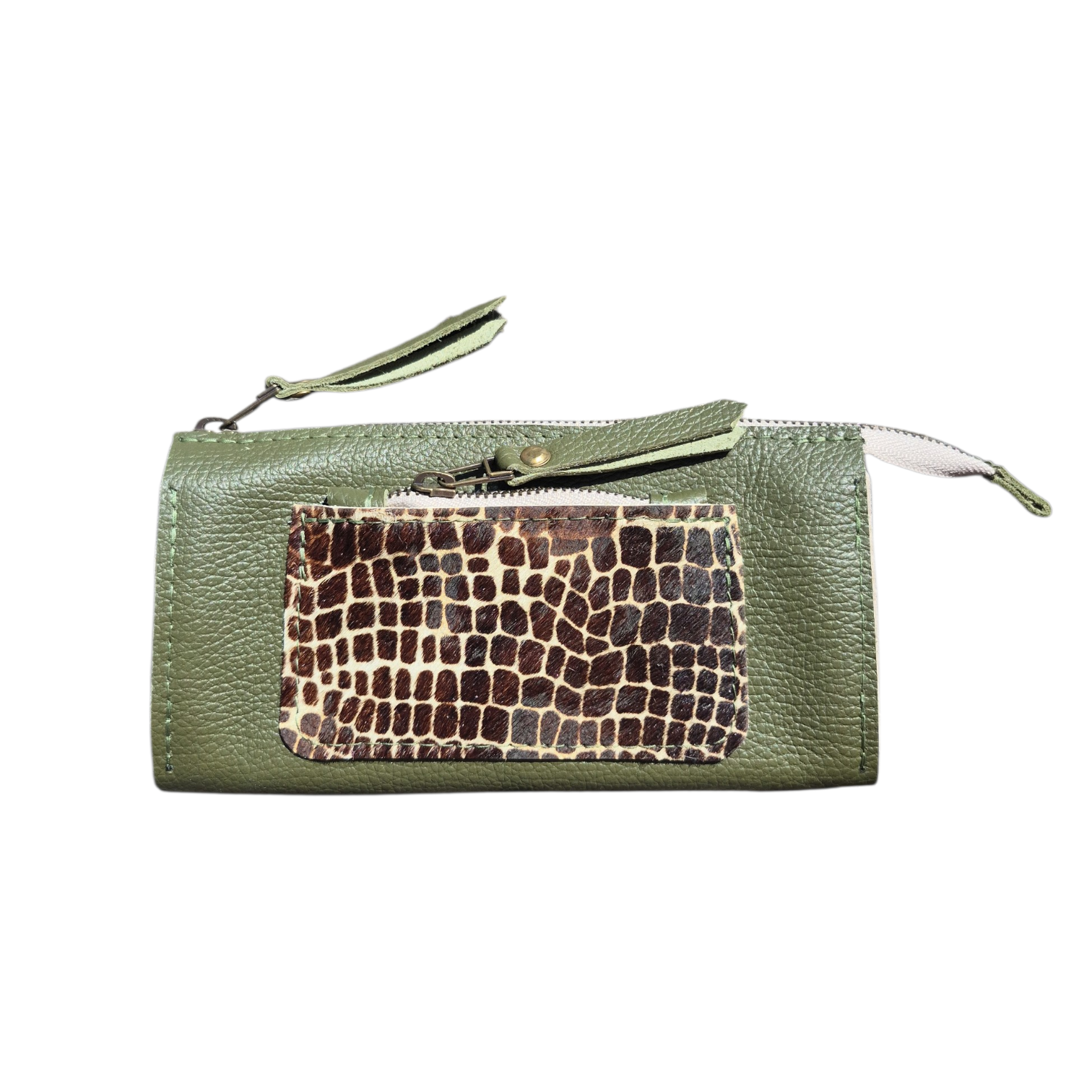 Binnenin, twee ritsvakken voor muntjes of briefgeld.