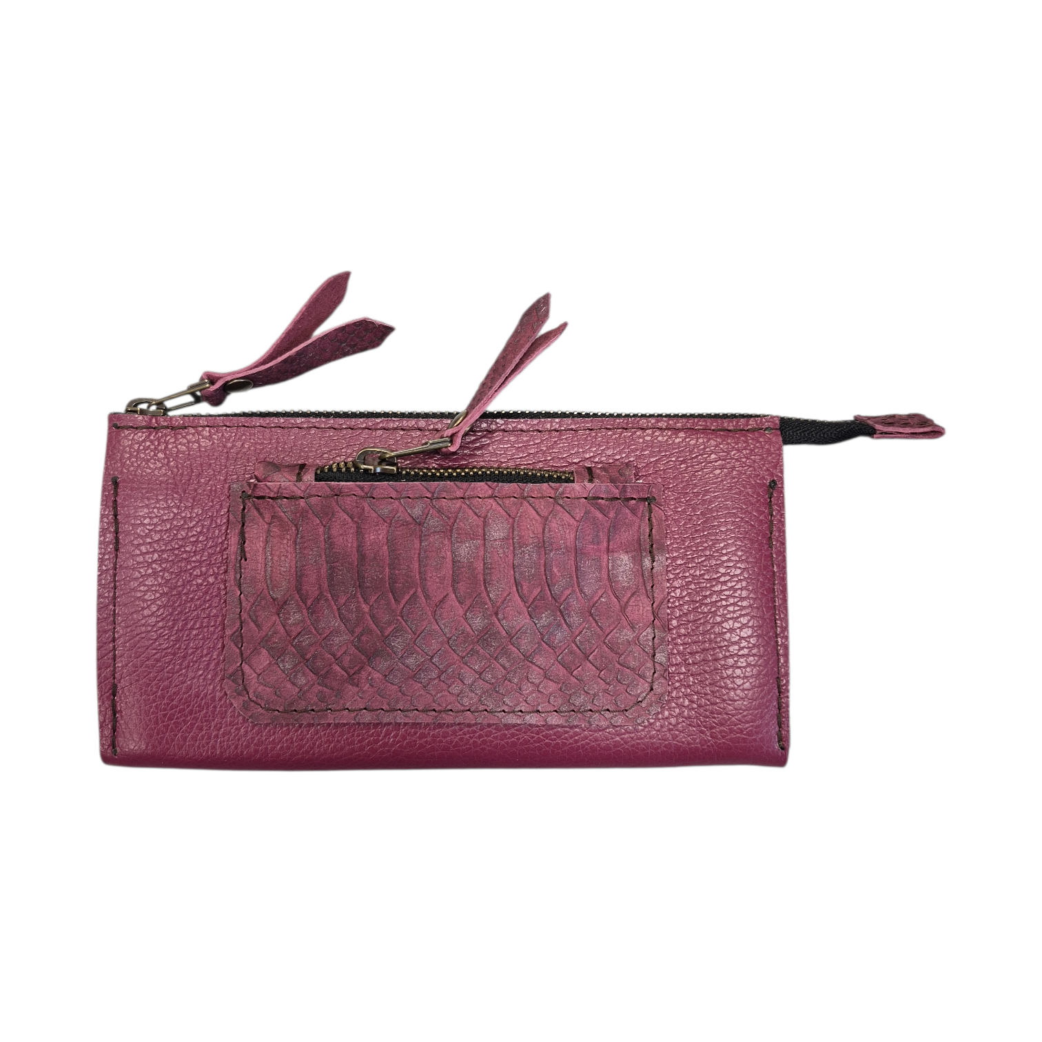 Binnenin, twee ritsvakken voor muntjes of briefgeld.