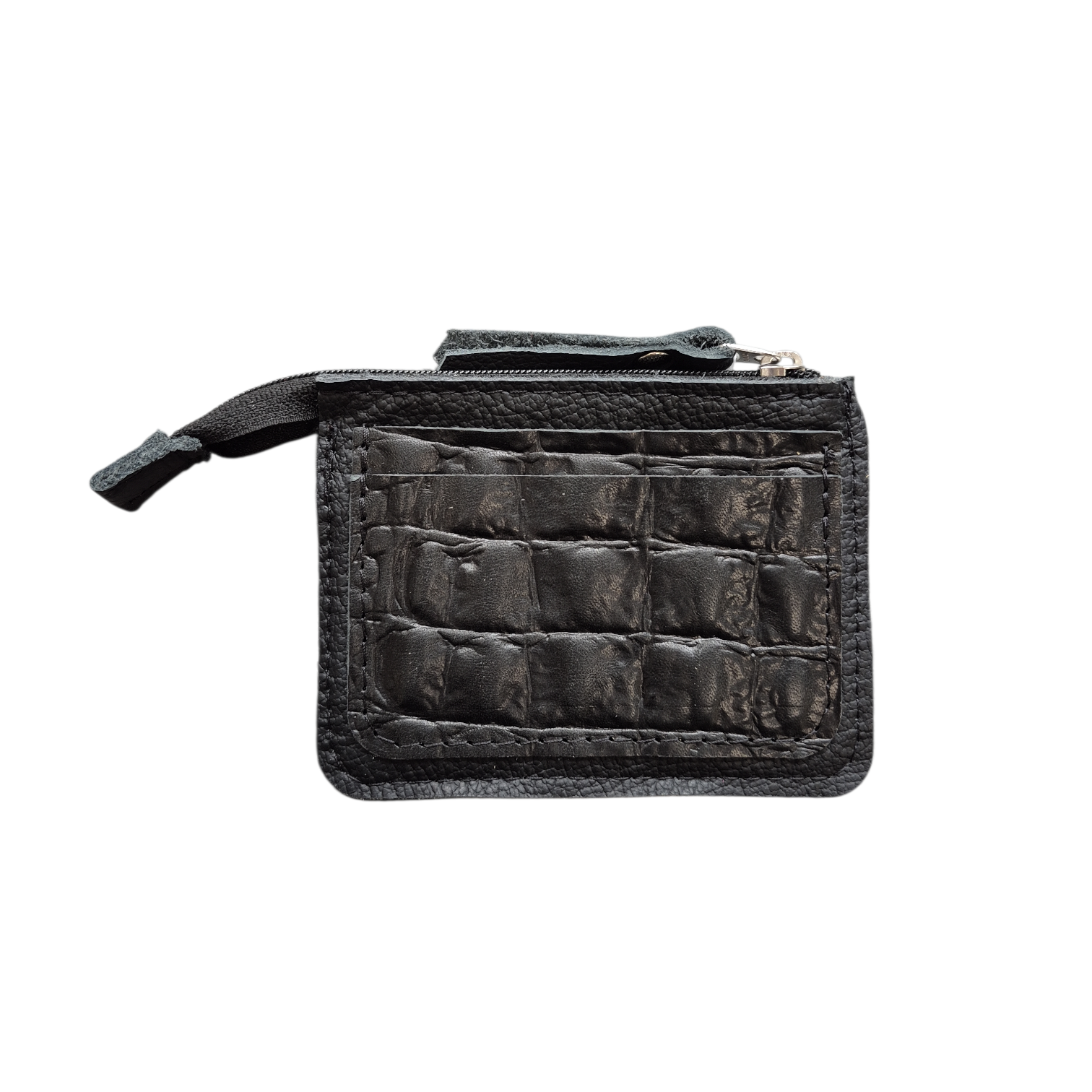 Brent is uitgevoerd in zwart en zwart croco leer.