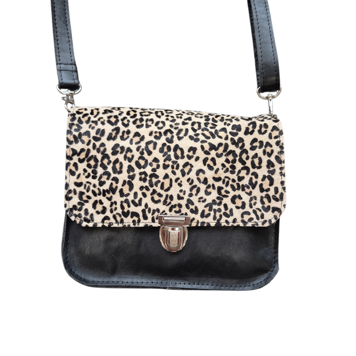 Deze Do is uitgevoerd in diepzwart leer en leopard vacht.
