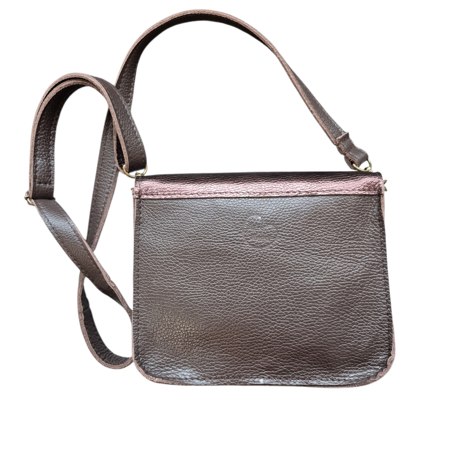 Deze Do is uitgevoerd in donkerbruin leer en metallic bruin leer.