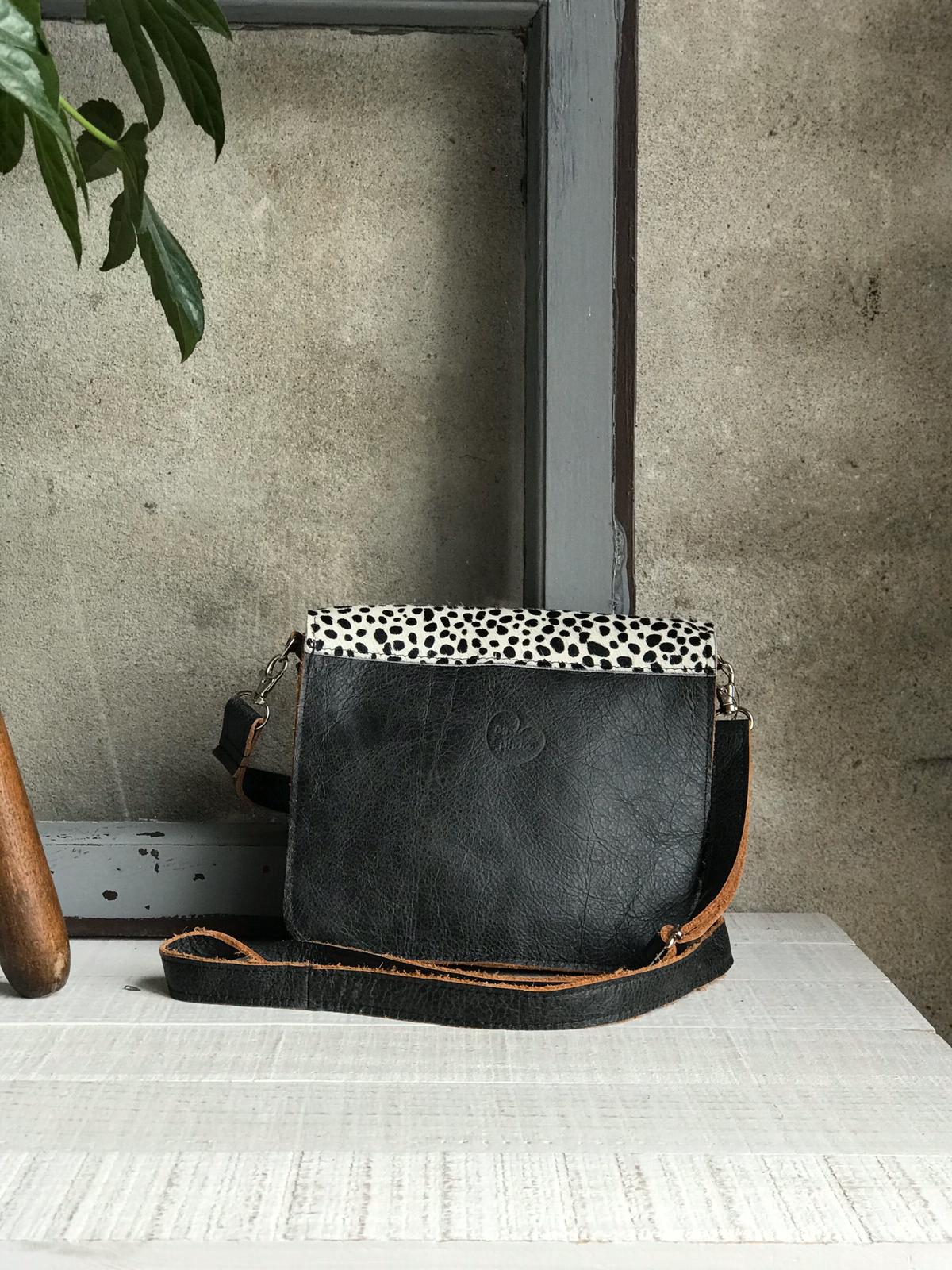 Ze sluit met de flap, jij kiest of je een drukknoop of een gespje wil.