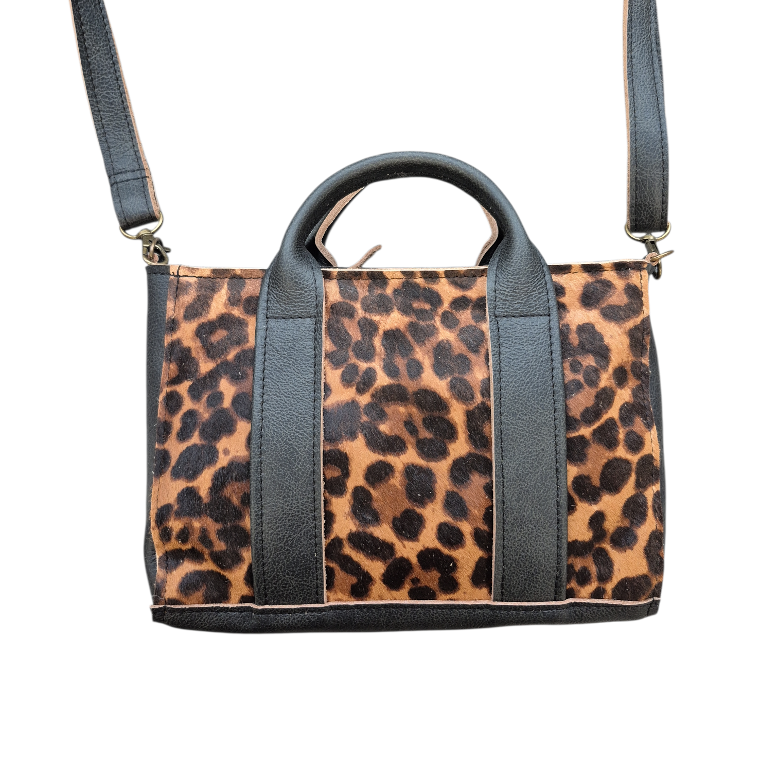 Douwe is uitgevoerd in zwart met bruine rand leer gecombineerd met een luipaard vachtje.