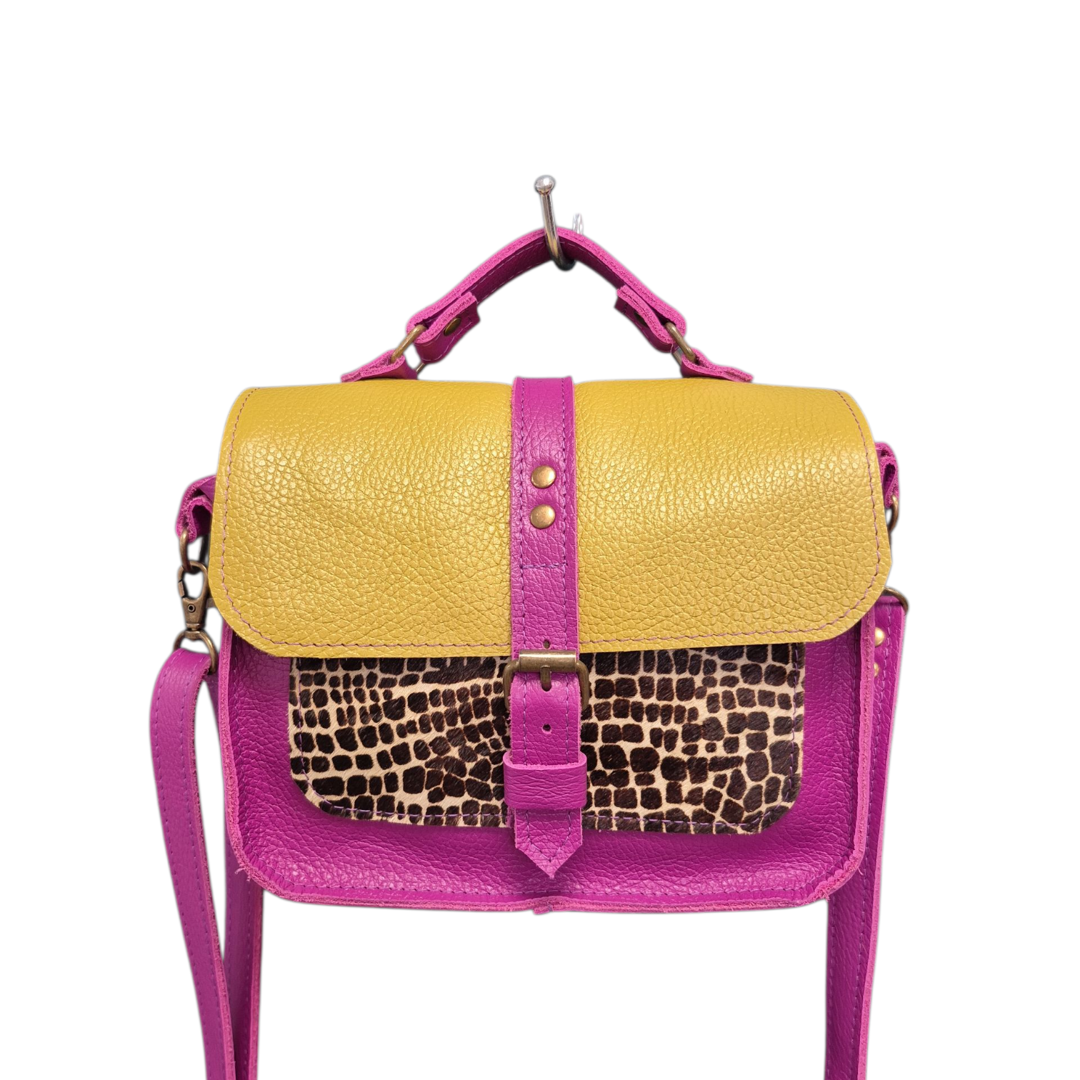 Eden is uitgevoerd in plum en pistasch leer met een limited vachtje.