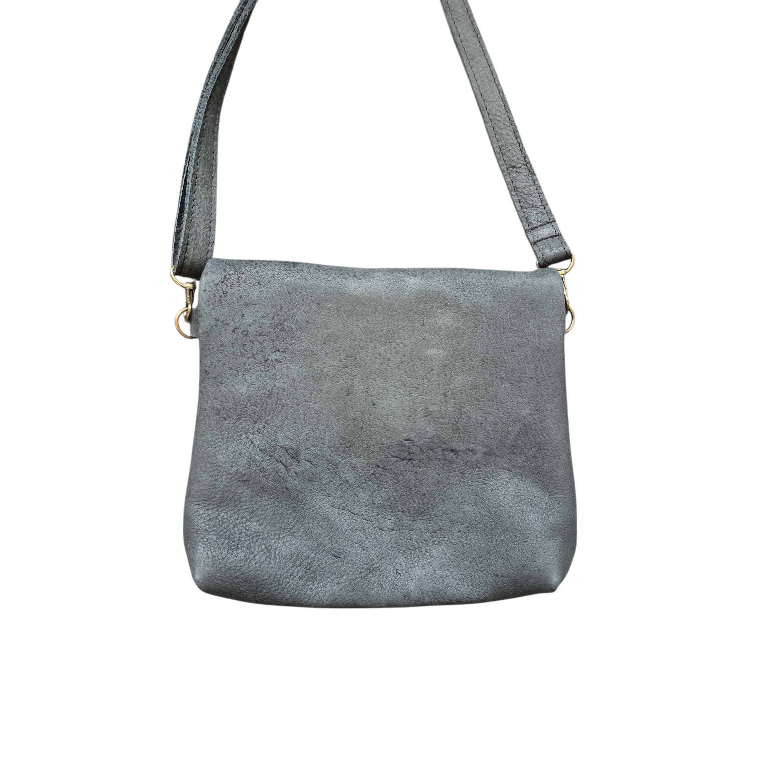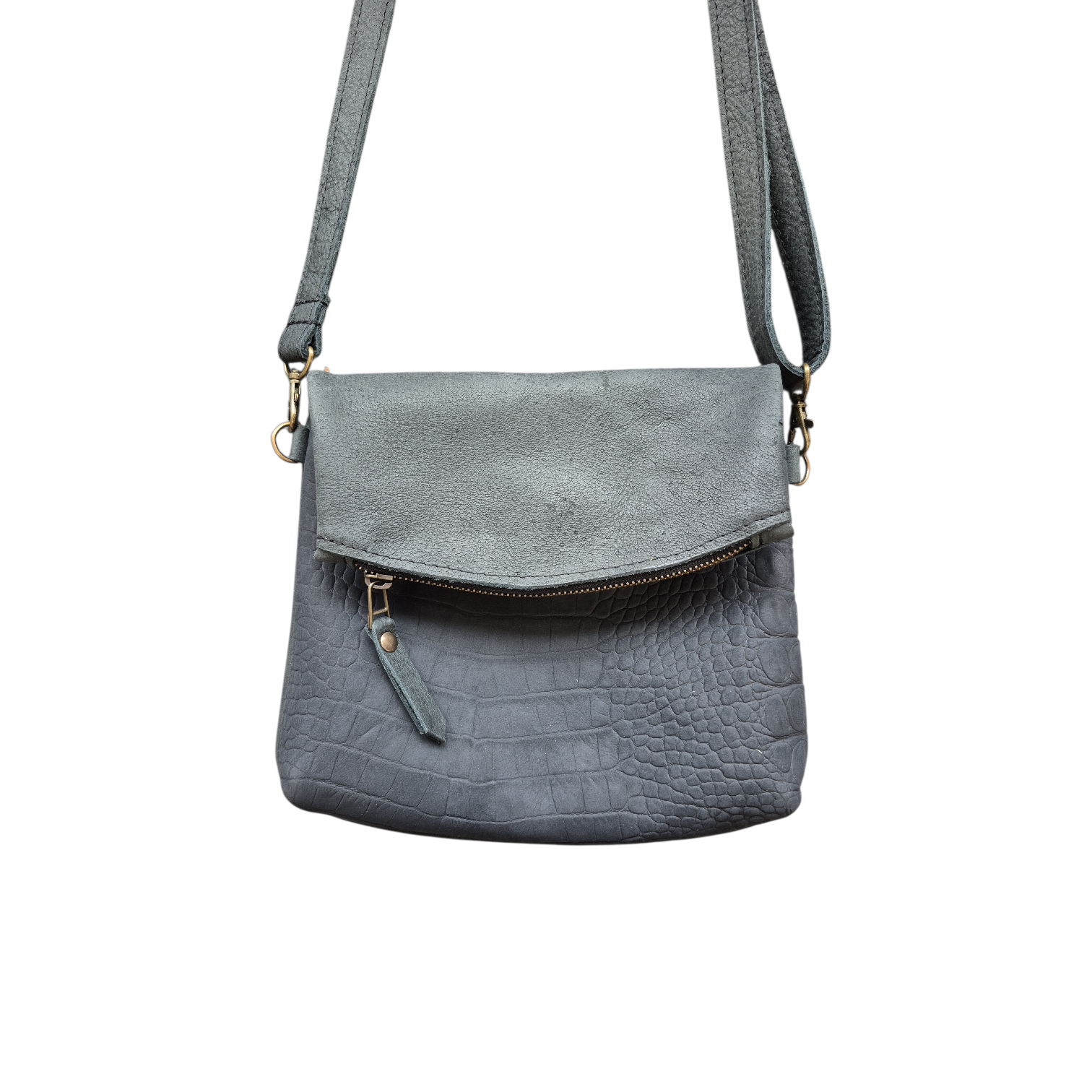 Emma is uitgevoerd in geleefd grijs leer en croco grijs leer.