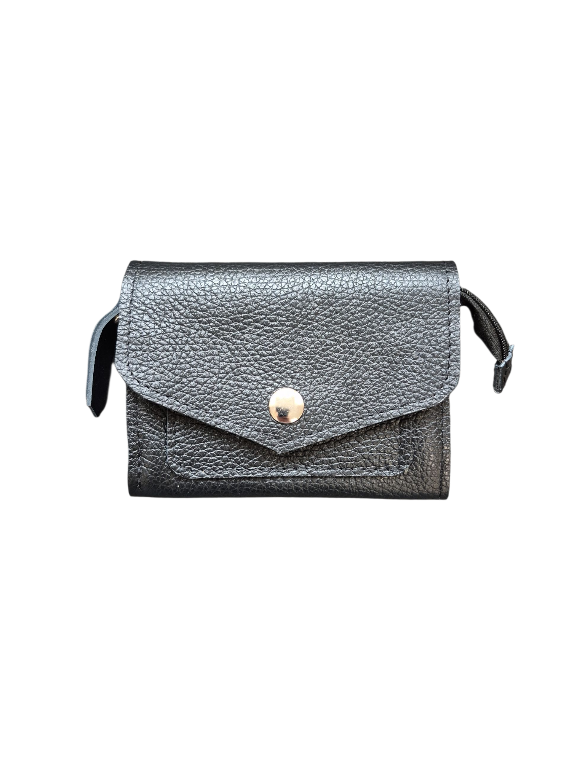 Een ritsvak, twee vakken voor briefgeld en bonnetjes.