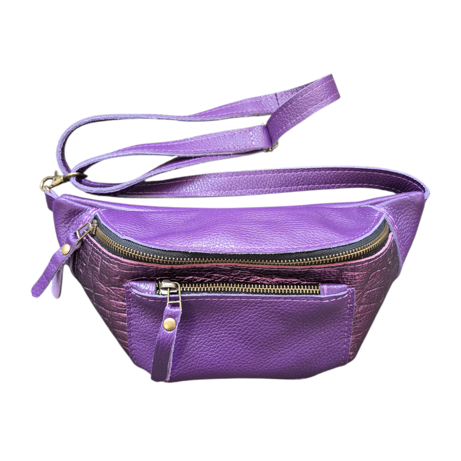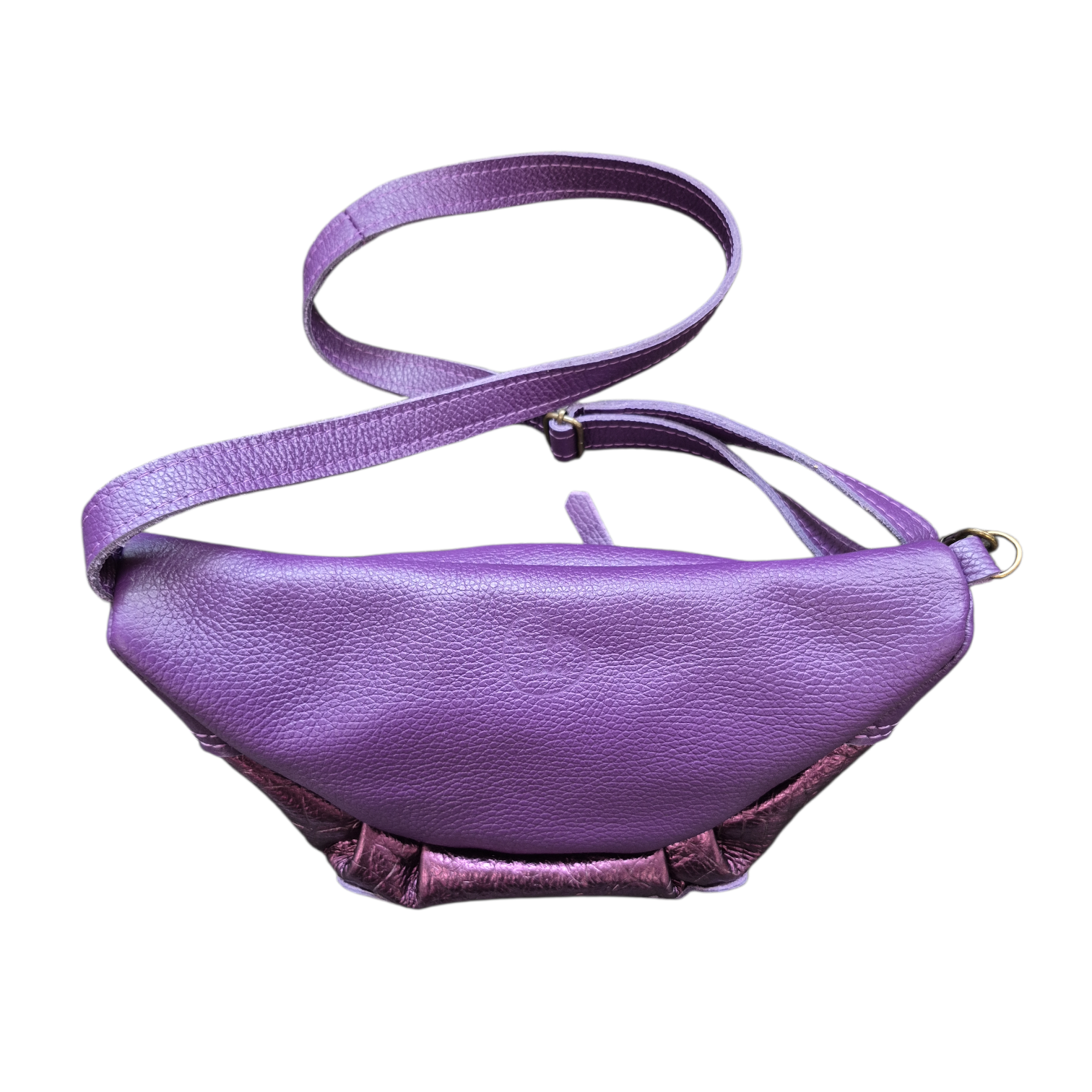 Hippie is uitgevoerd in paars en metallic paars croco.