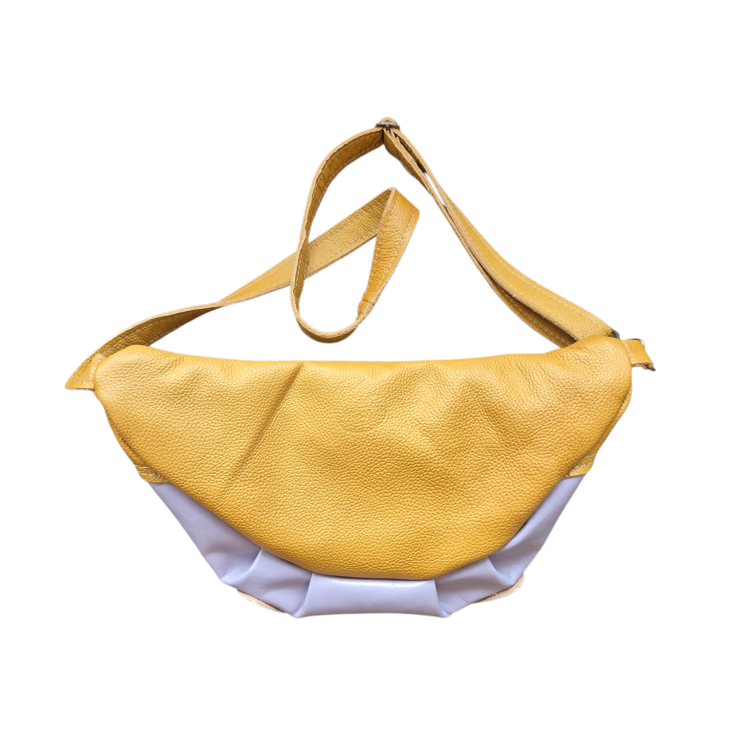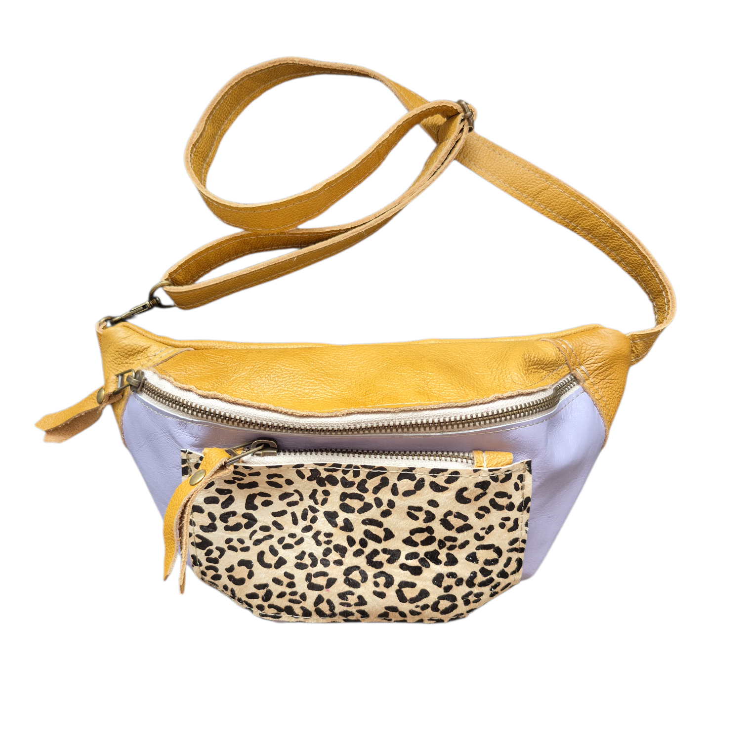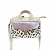 Hippie is uitgevoerd in lila en oker leer met een limited vachtje.