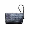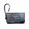 Jente is uitgevoerd in diepzwart leer en grijs-zwart croco print leer.