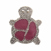Schildpad is uitgevoerd in olijf leer en limited vlekjes vacht.