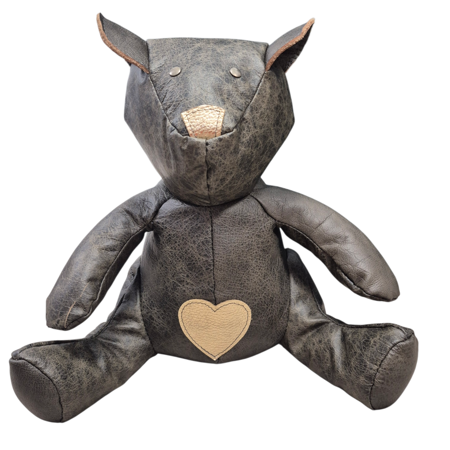 Beer is uitgevoerd in geheel grijs leer met gouden details.