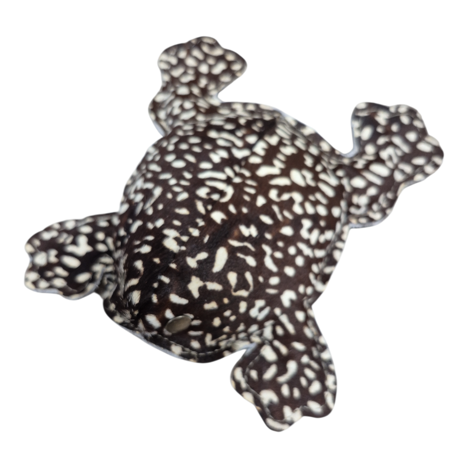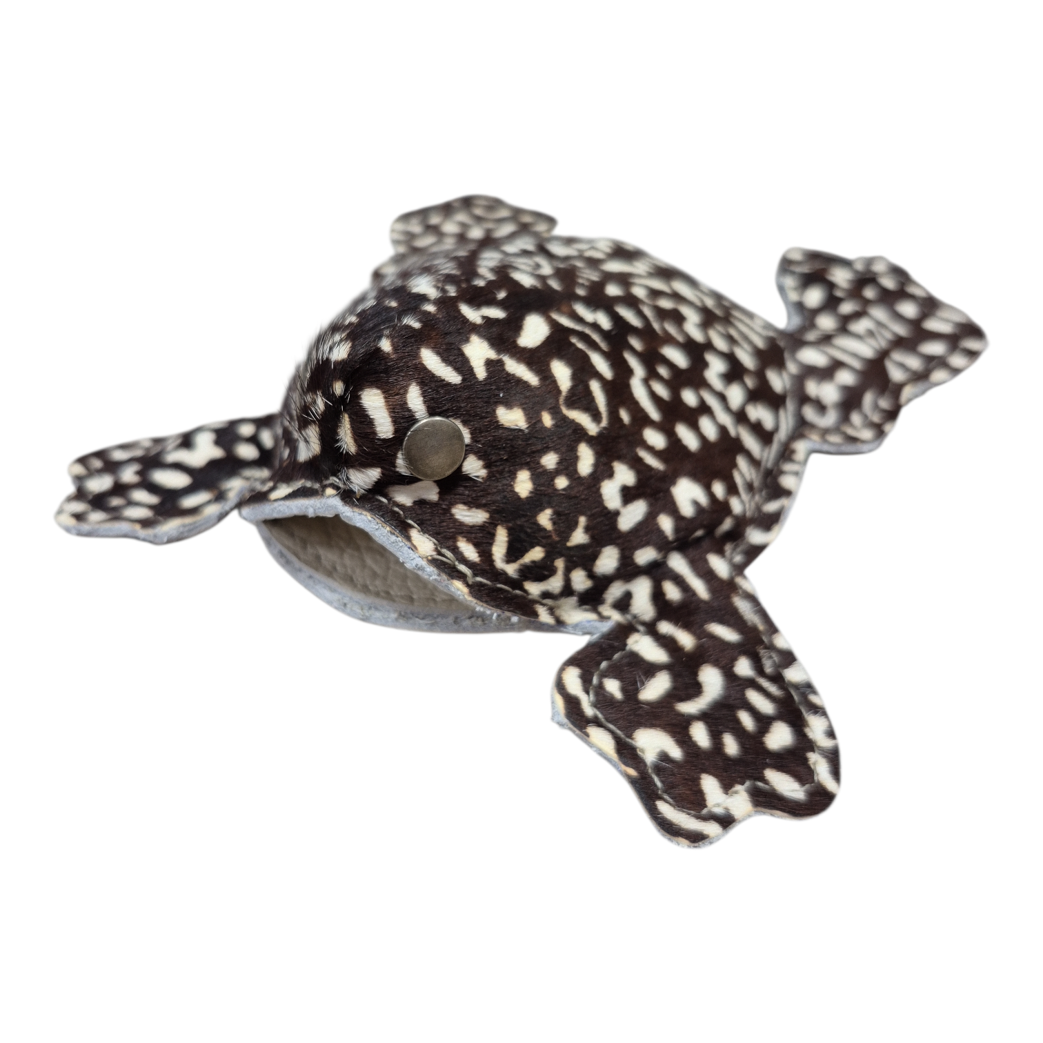Kikker is uitgevoerd in creme leer en limited vacht.