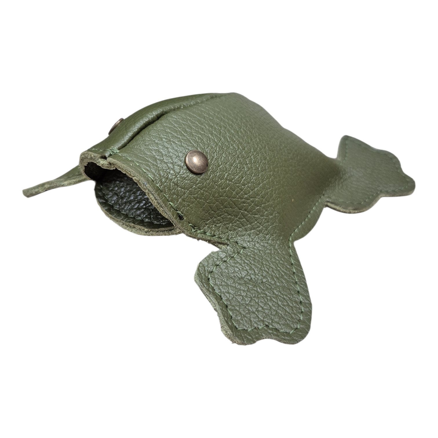 Kikker is uitgevoerd in geheel olijf leer.