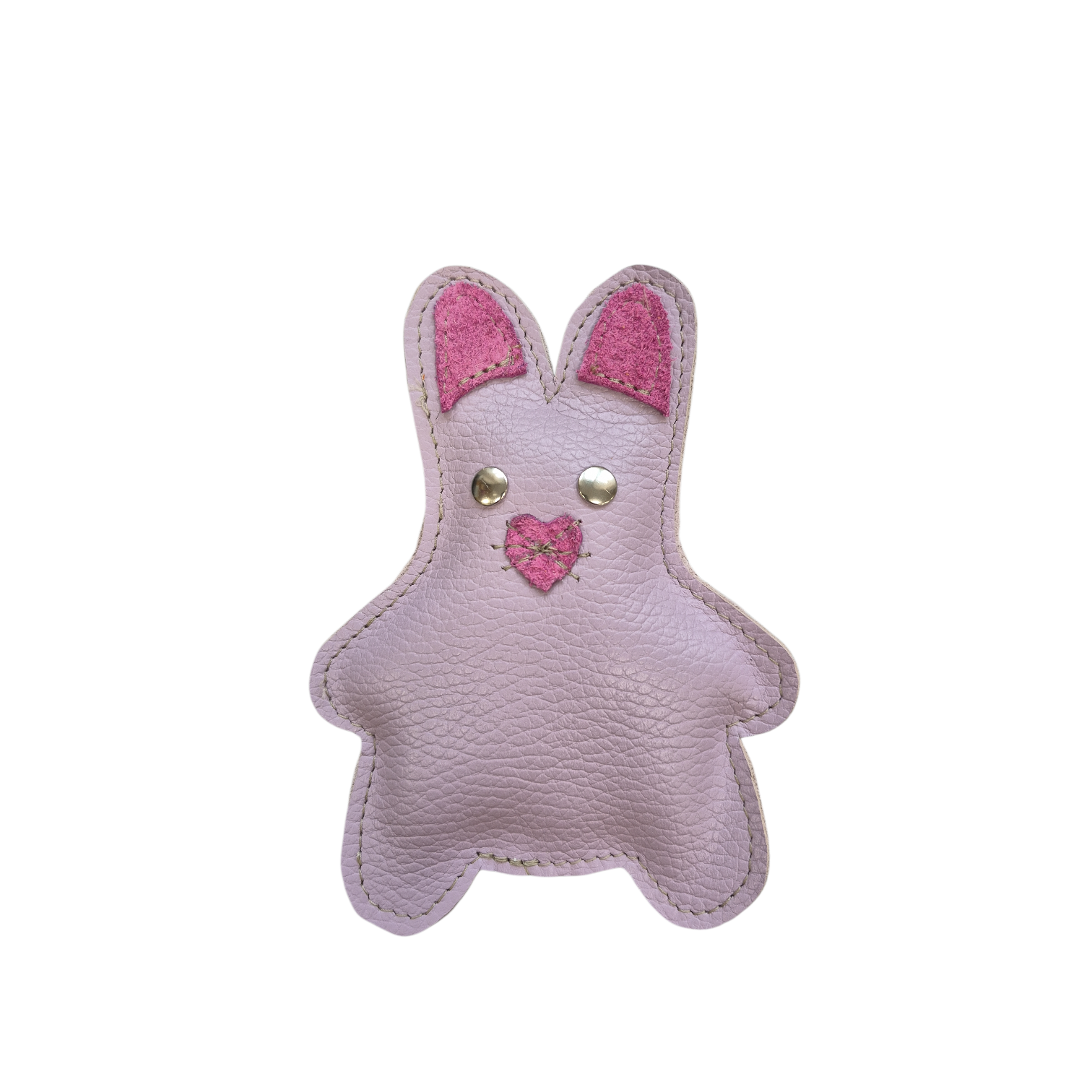 Konijn is gemaakt van lila en roze leer.