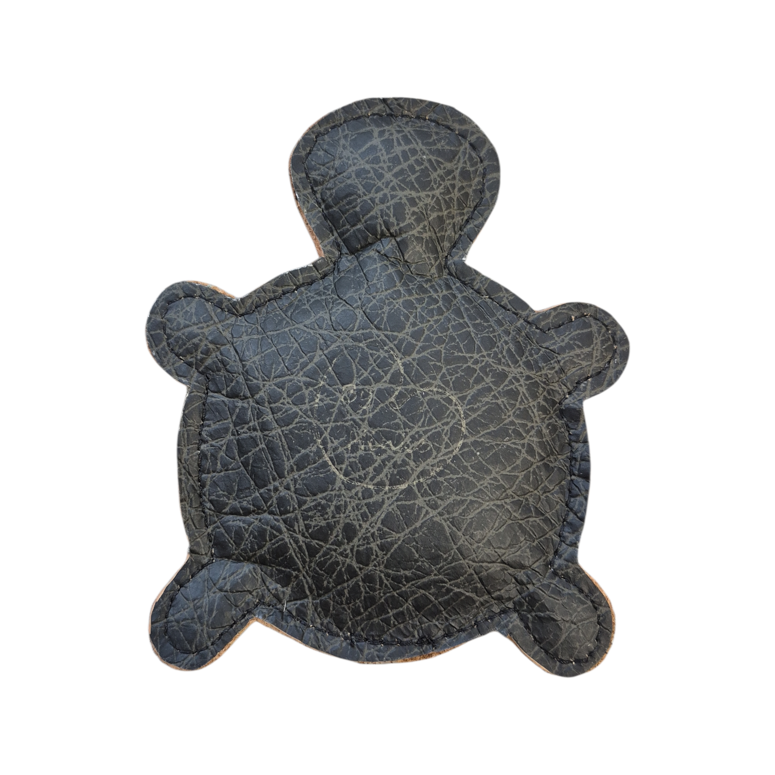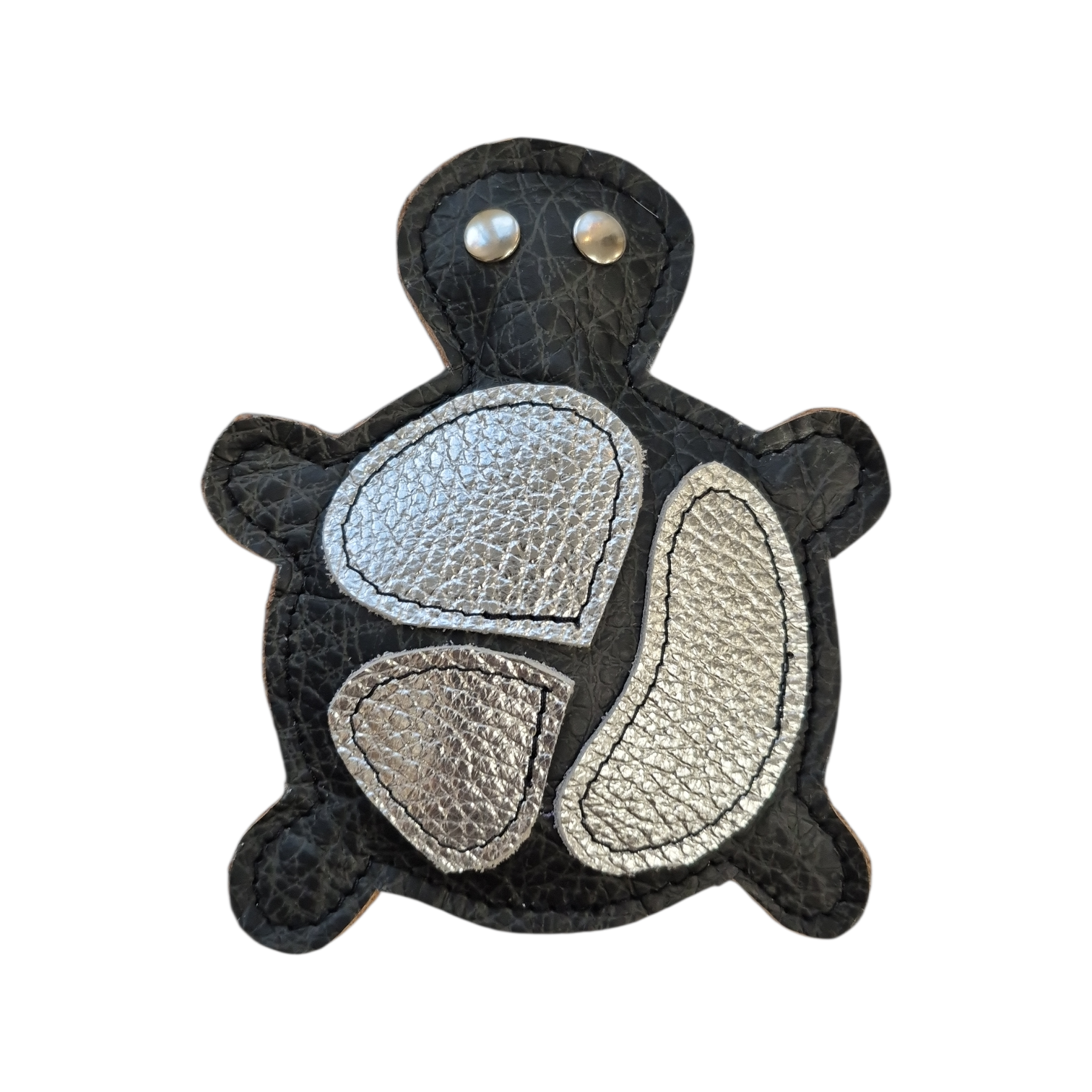 Schildpad is uitgevoerd in zwart en zilver leer.
