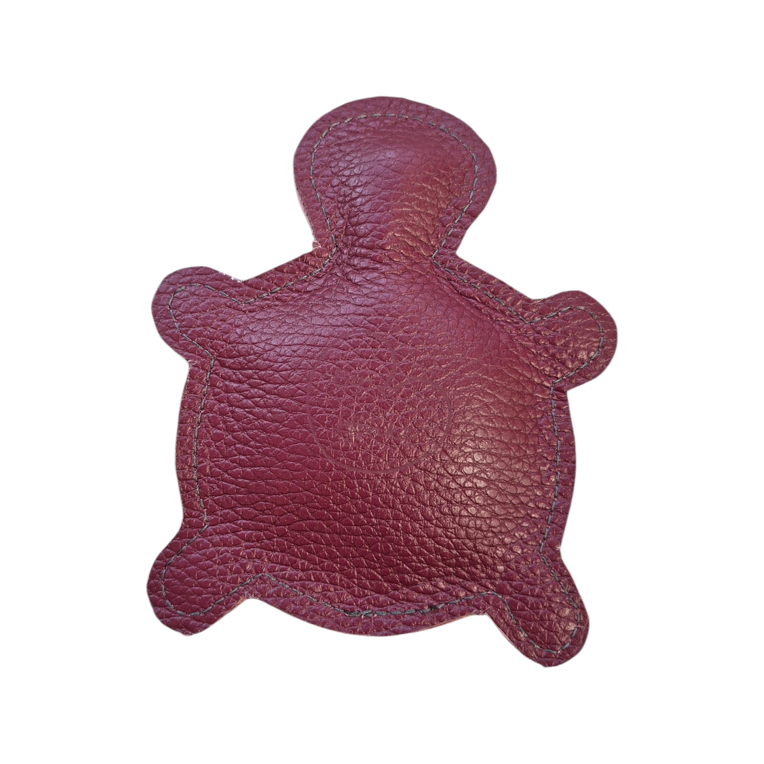 Schildpad is uitgevoerd in bordeaux rood leer en vlekkie wit vacht.