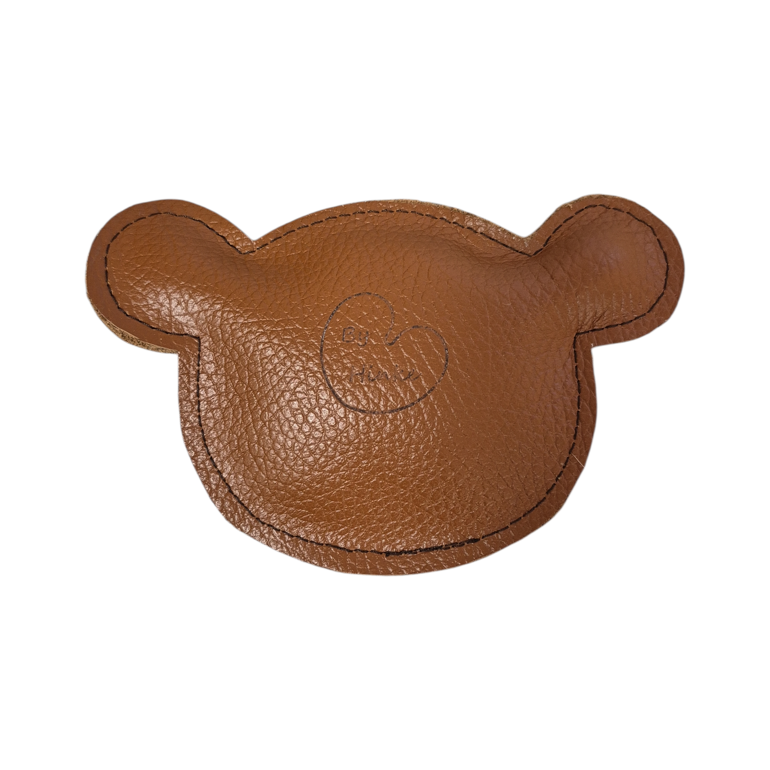 Teddy is uitgevoerd in cognac leer en luipaard vacht.