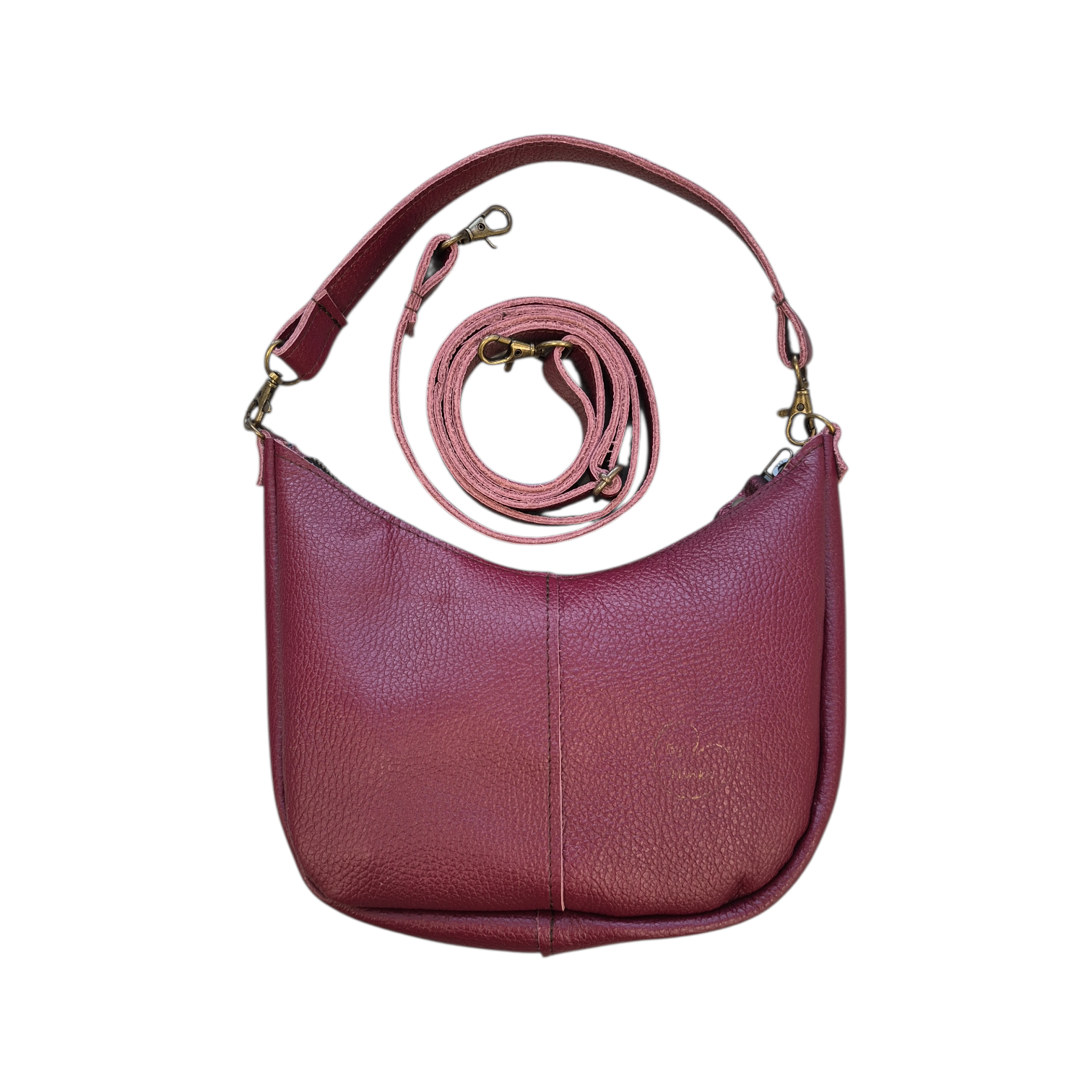 Mae is uitgevoerd in twee soorten bordeaux leer.