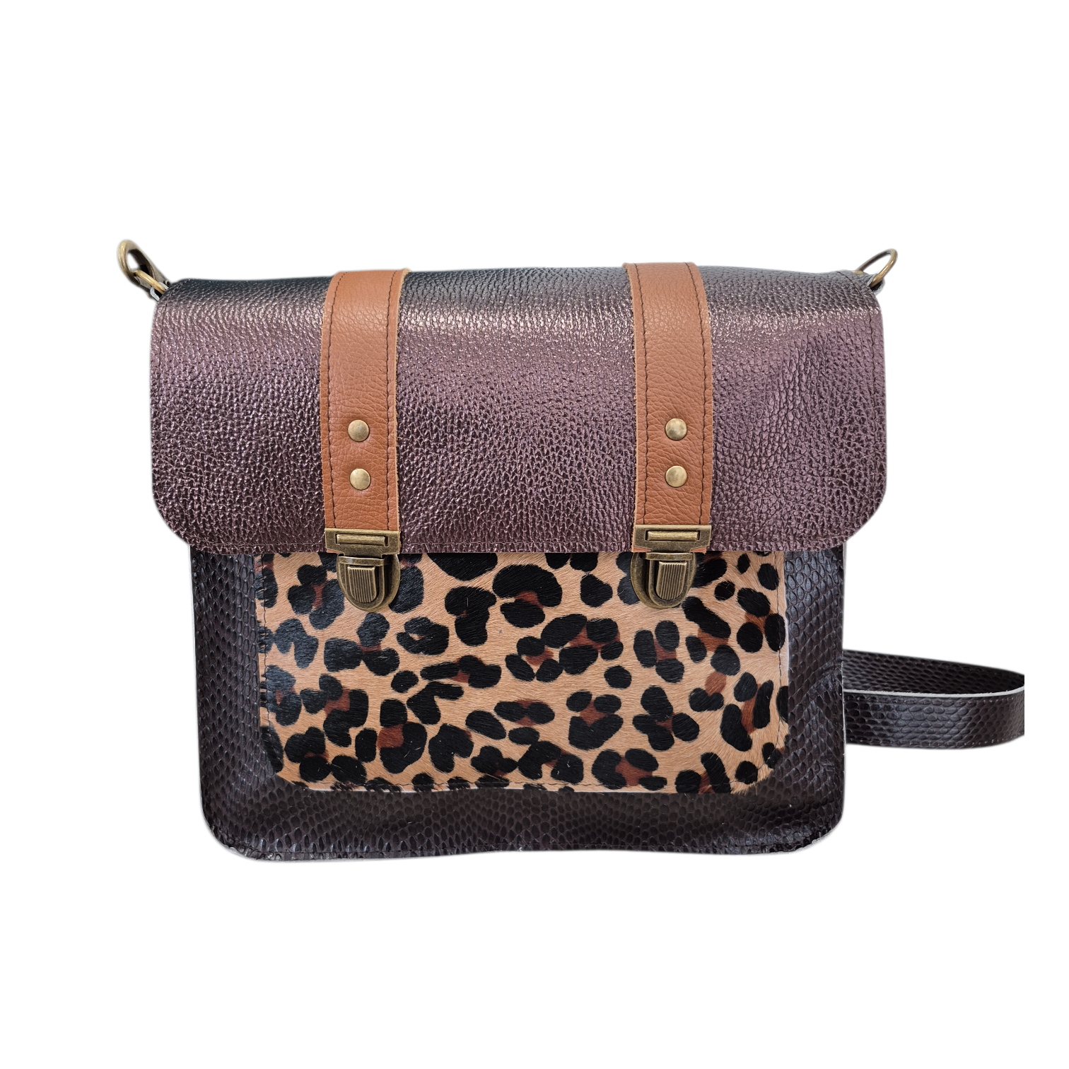 Marijn is uitgevoerd in bruin, cognac bruin en metallic bruin leer met een luipaard vachtje.