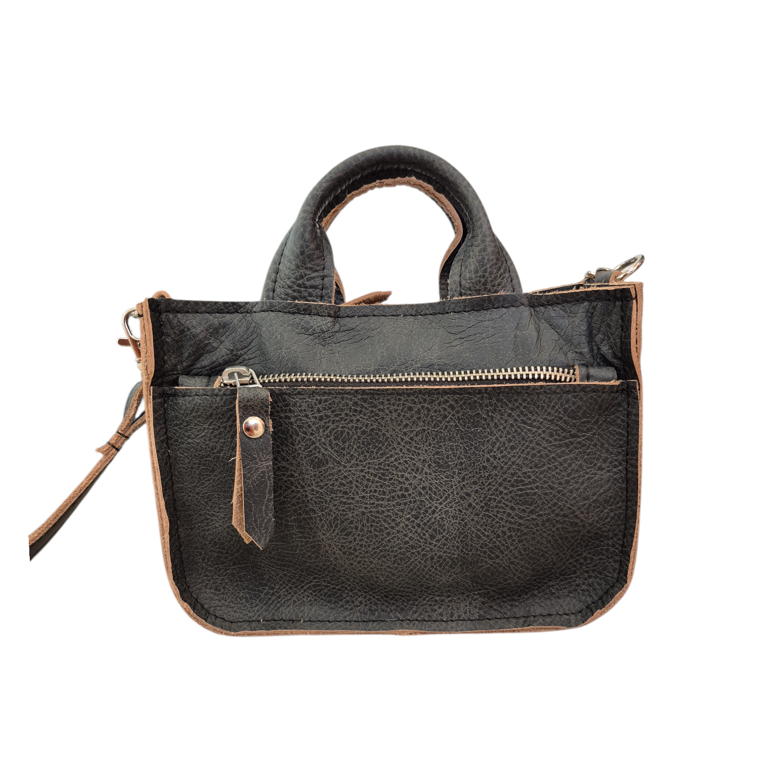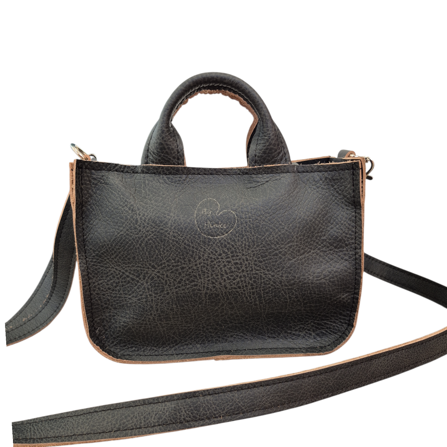 Deze Mieke is uitgevoerd in geheel zwart met bruine rand leer.