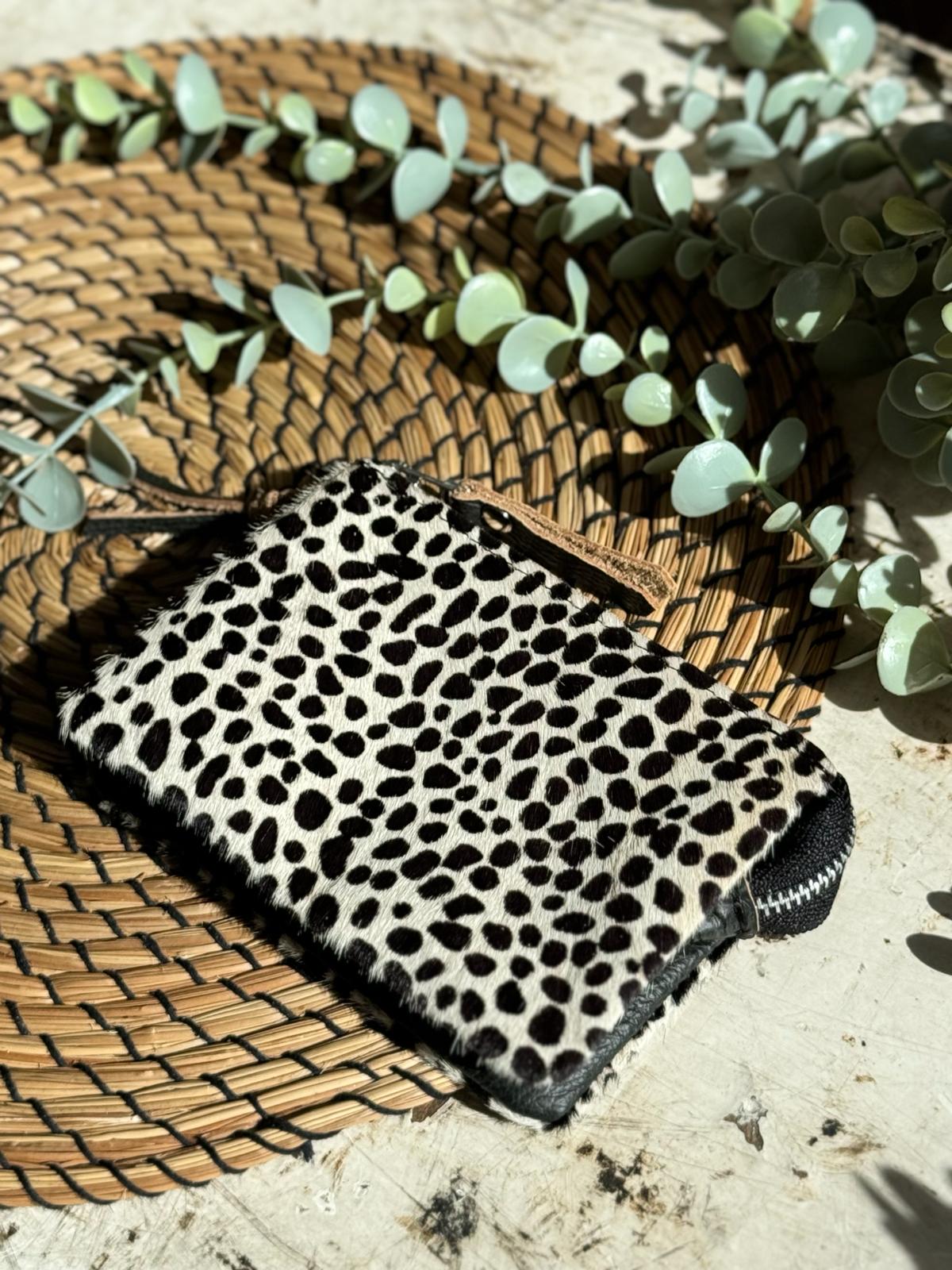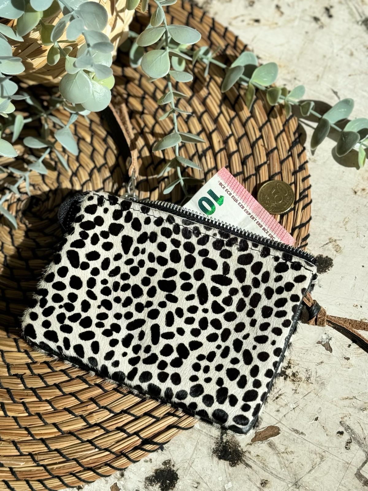 Het printje (voorzijde en achterzijde) van vlekkie wit vacht.