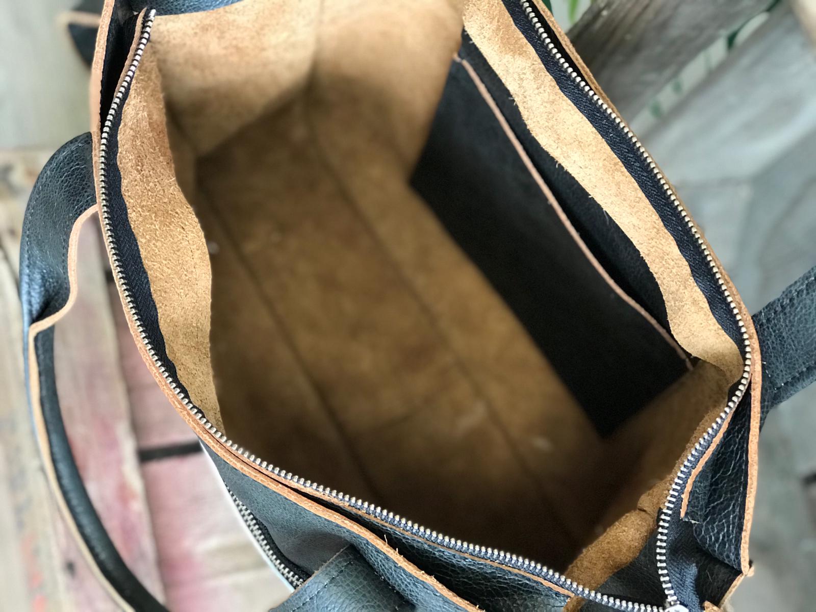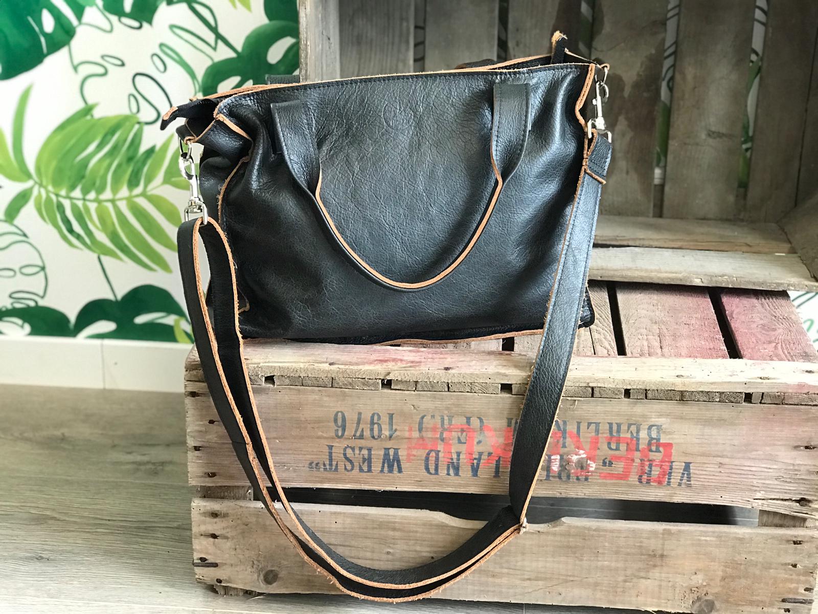 De basiskleur is van zwart met bruine rand leer.