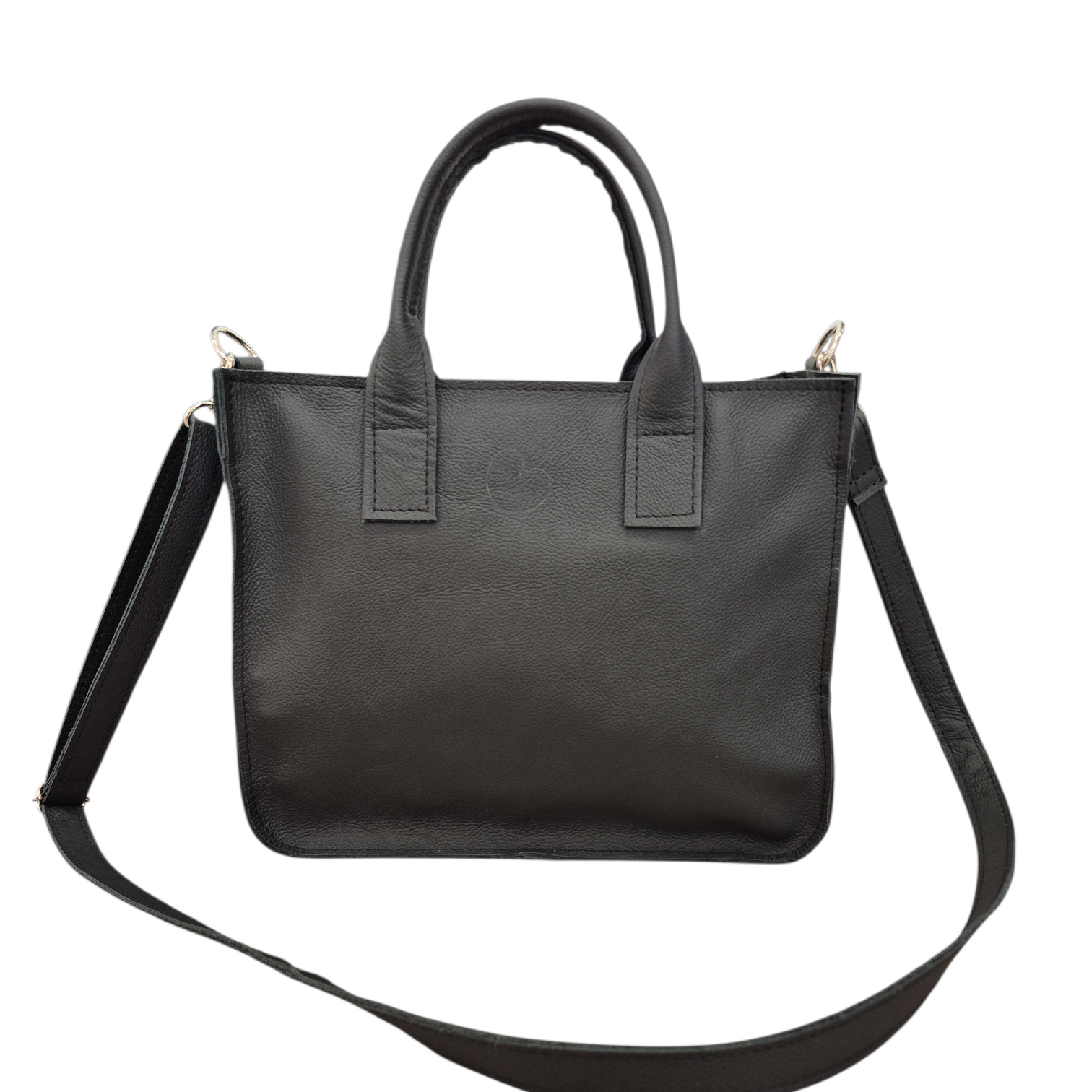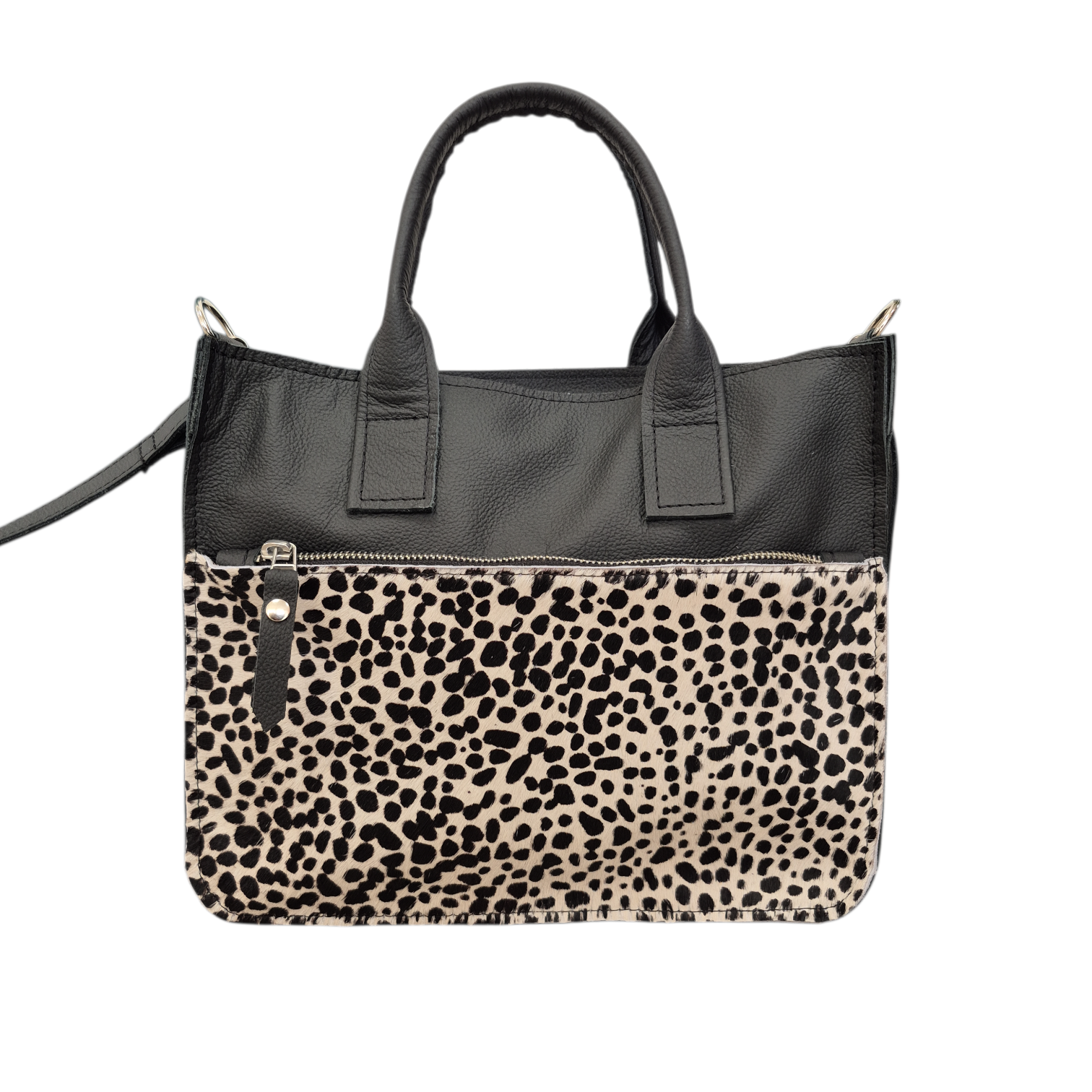 Neeltje is uitgevoerd in diepzwart leer en vlekkie wit vacht.