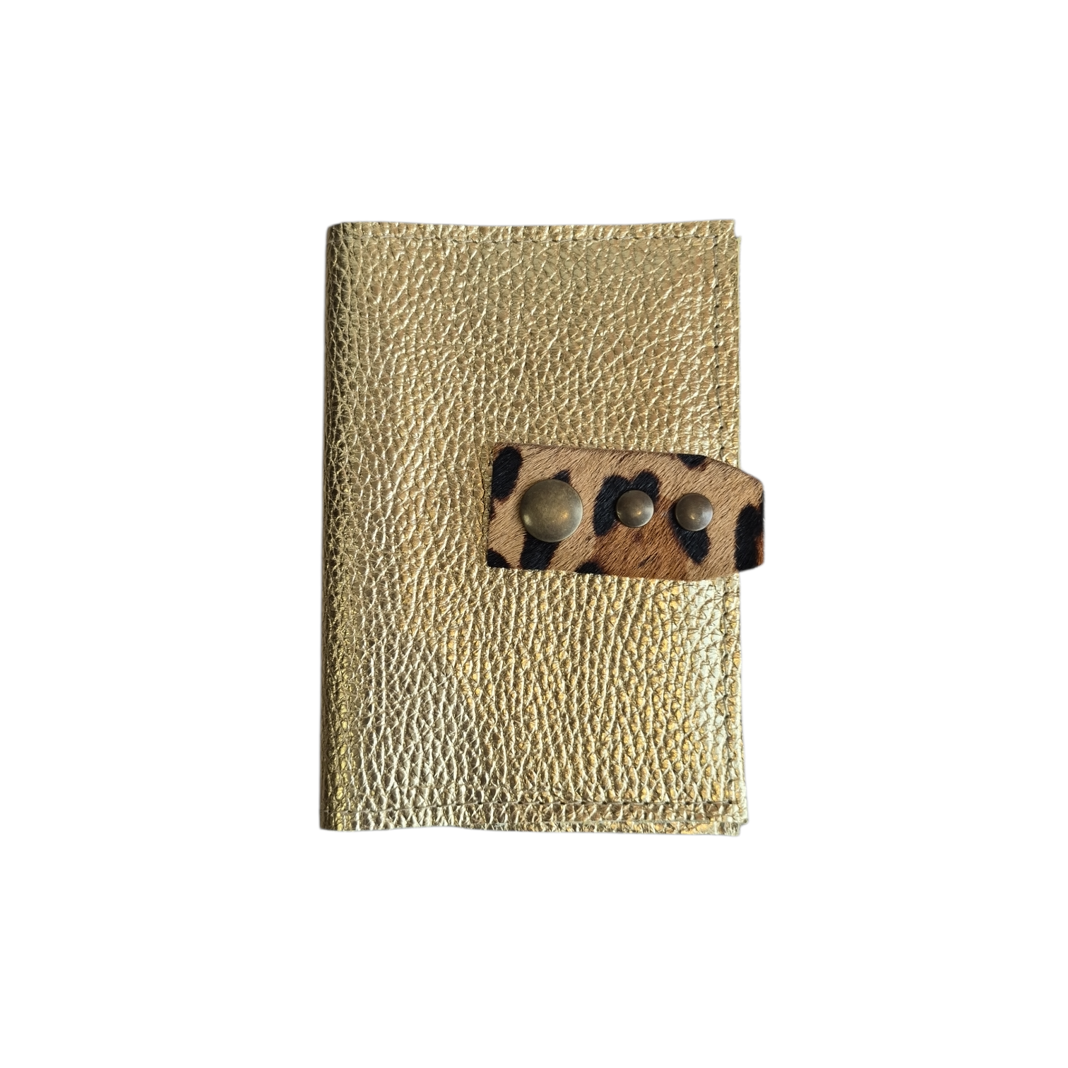 Ik ben uitgevoerd in metallic goud leer en luipaard vacht.