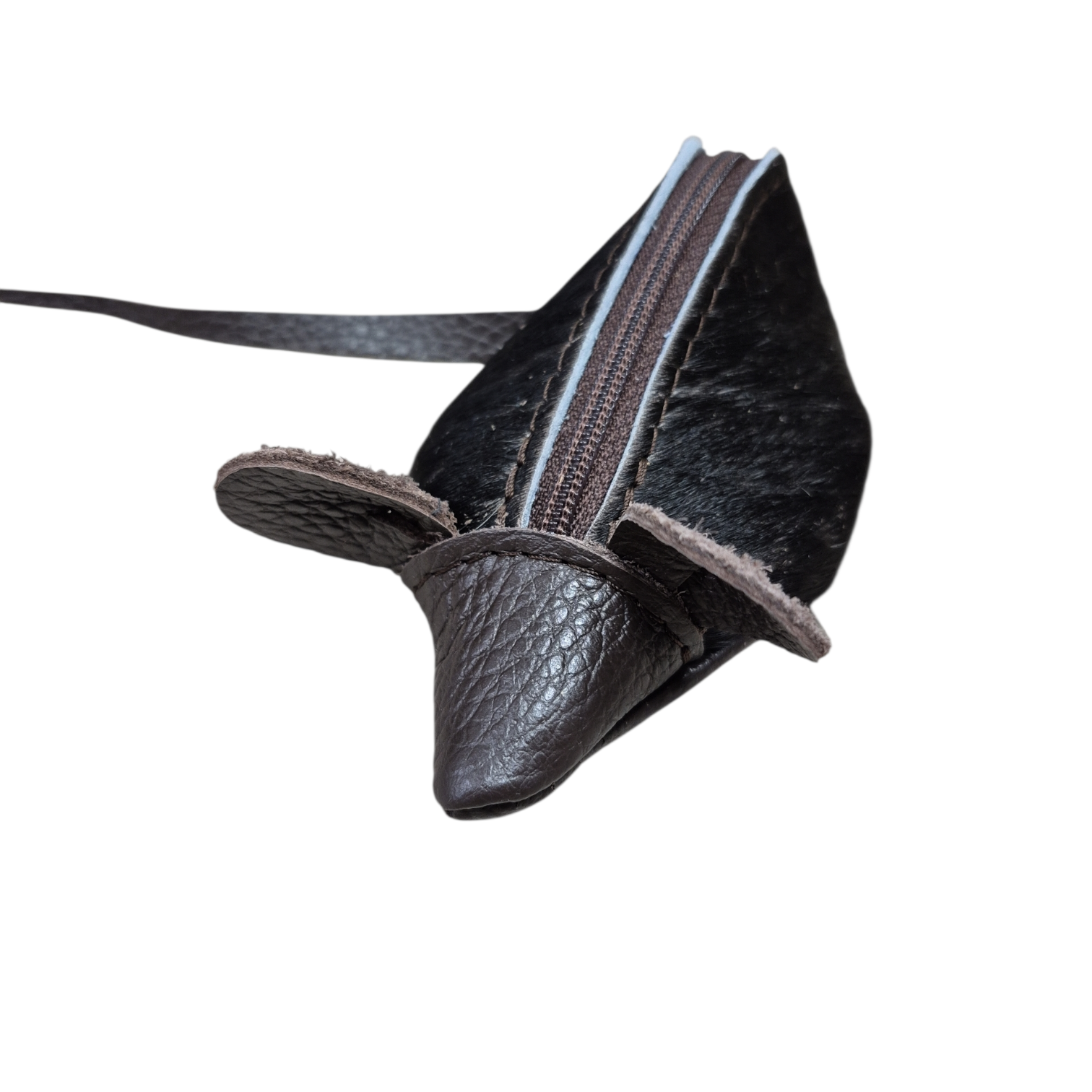 Ik ben uitgevoerd in bruin leer en bruin vacht.