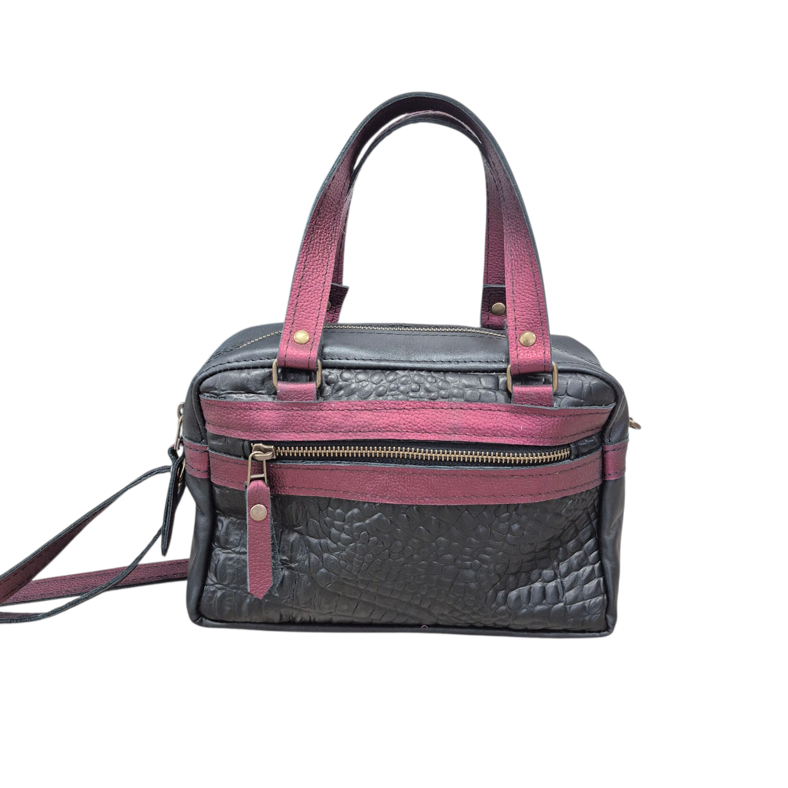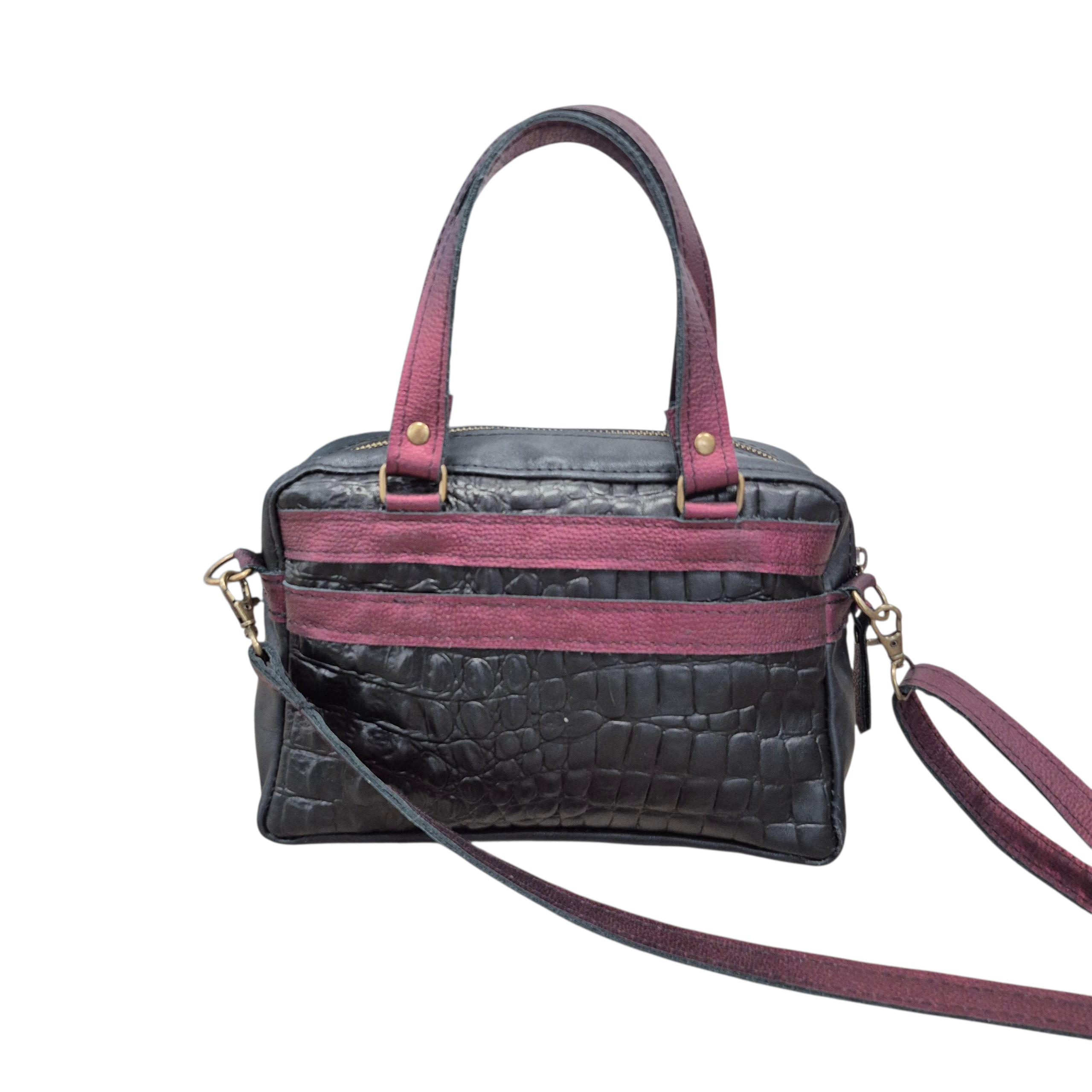 Sascha is uitgevoerd in zwart, croco zwart en metallic bordeaux leer.