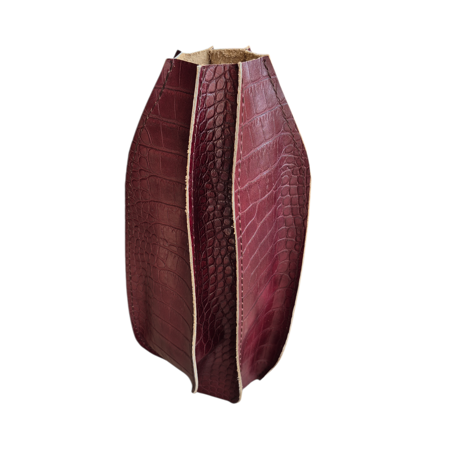 Ik ben uitgevoerd in geheel bordeaux rood croco leer.