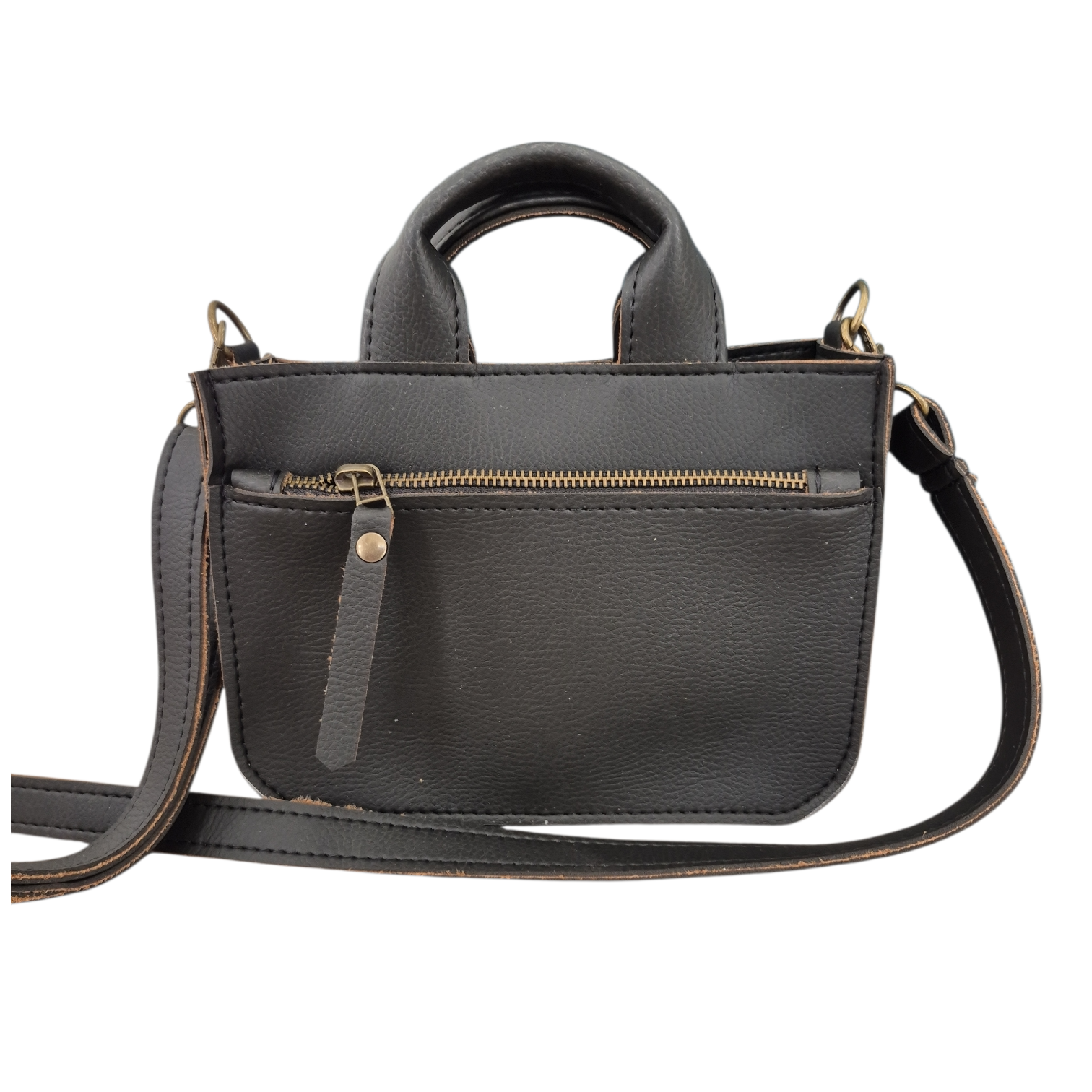 Mieke is uitgevoerd in vegan zwart fake leather.