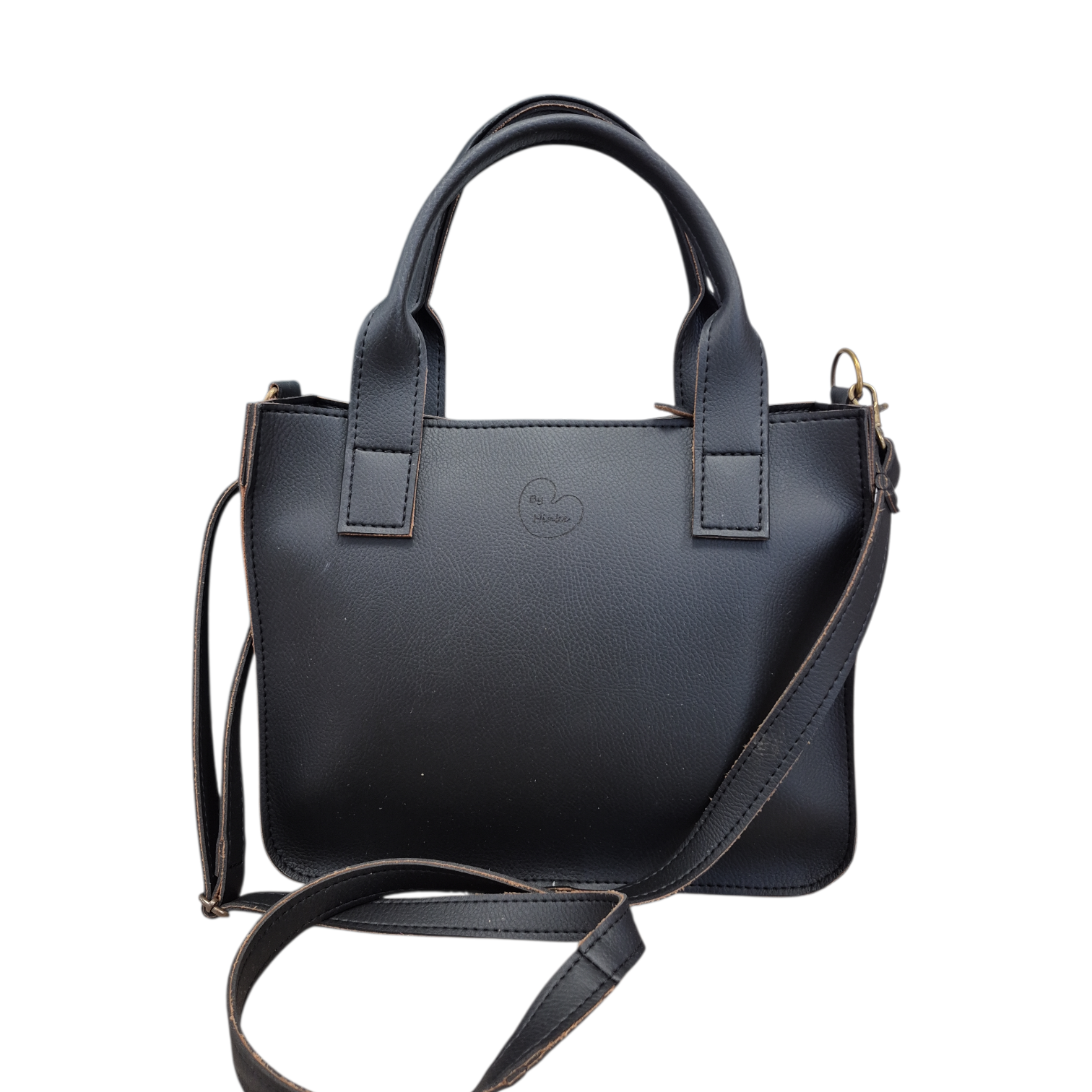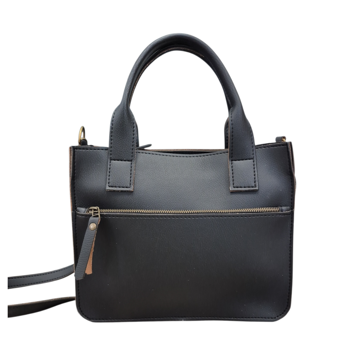 Nelleke is uitgevoerd in vegan zwart fake leather.