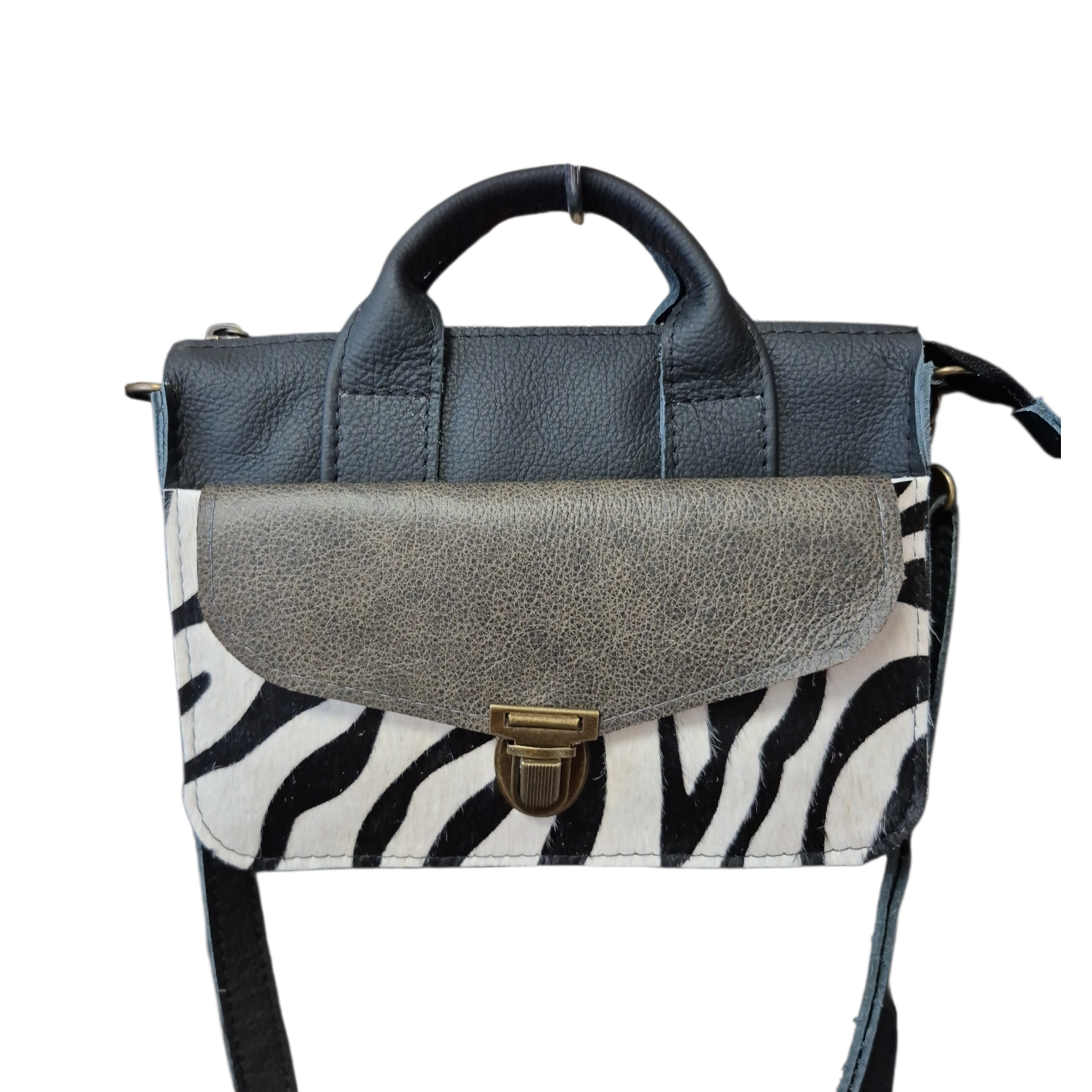 Yfke is uitgevoerd in diepzwart en grijs leer in combinatie met zebra vacht.