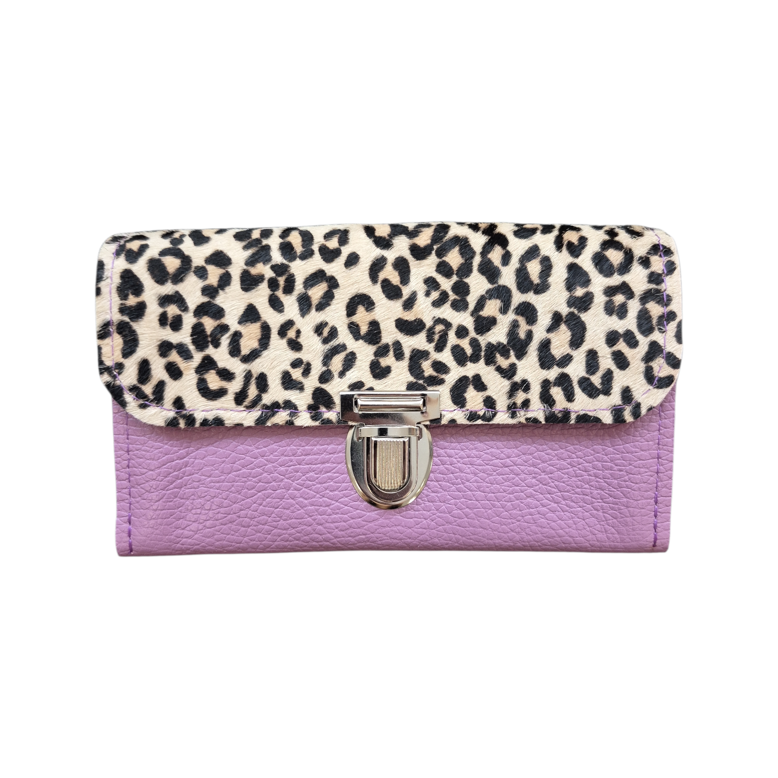 Zuske is uitgevoerd in roze leer en cheetah vacht.